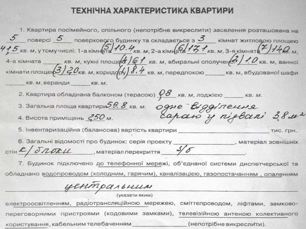 - Площа — 60 м², поверх 5/5, дах у порядку.
