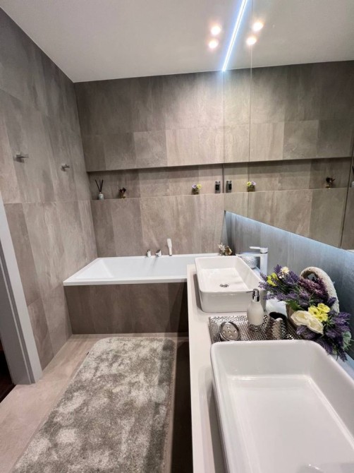 Мебель и техника от надежных производителей (мебель, светильники, люстры - Eichholtz (Голландия); техника-Electrolux, Bosch; сантехника-Rehau, инсталляция GROHE(Германия), краны Hansgrohe (Германия), унитазы - Roca Gap(Испания), умывальники- Devit (Италия).