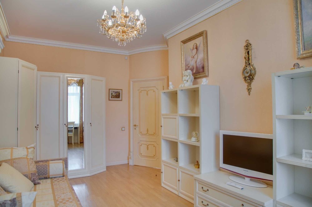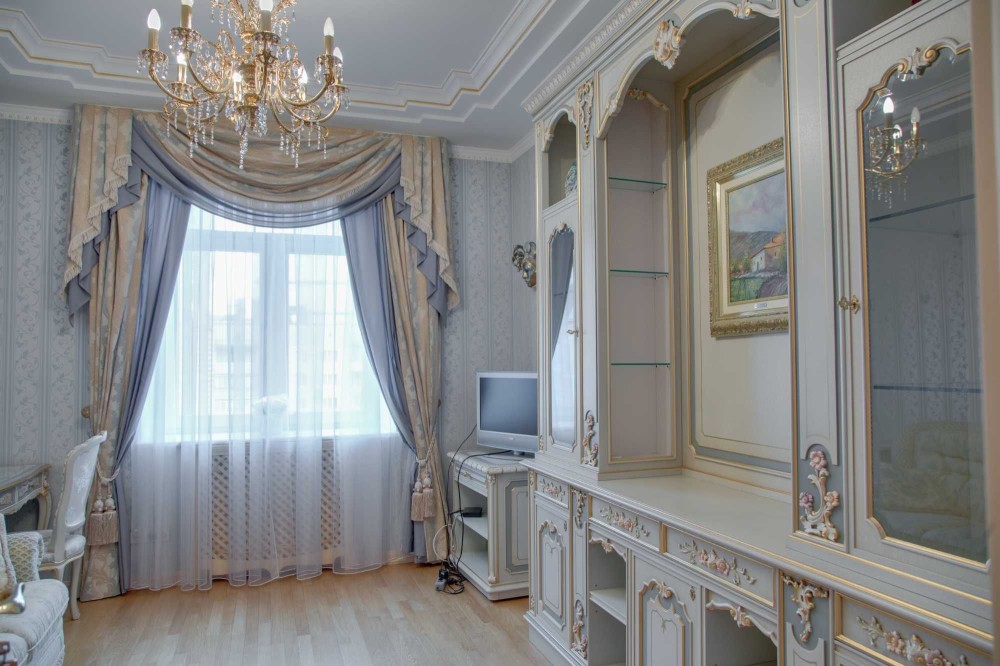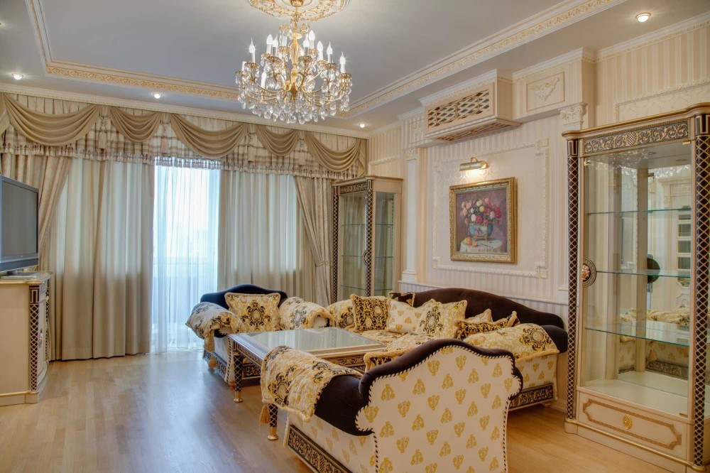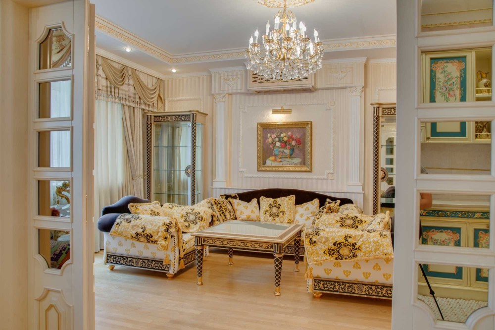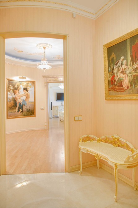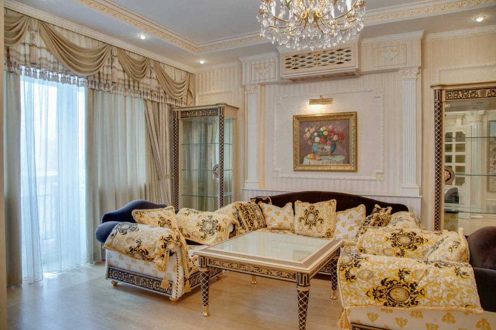 Без комиссии! S - 133, 8/80, 1/15, 6 кв. м. Квартира расположена на 8-ом этаже. Выполнен авторский дизайнерский ремонт в классическом стиле с применением лучших материалов в отделке, текстильные обои, паркет из массива, лепка, художественная роспись. Укомплектована мебелью и техникой лучших мировых производителей, включая Versace. Планировочное решение: прихожая, холл, гостиная, кухня-столовая, 3 спальни (из них Master Bedroom со своей ванной и гардеробной комнатами), с/у с душевой кабиной.