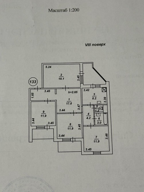 Висота стелі - 2.7 м
