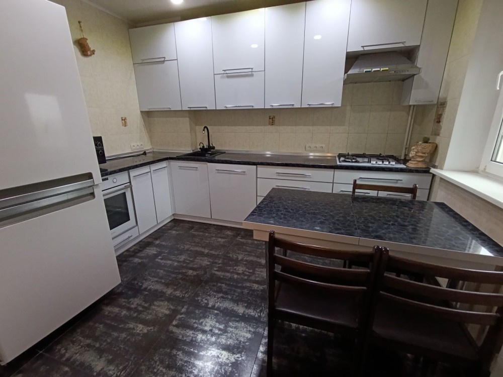 Большая просторная квартира с кухней-студией и панорамным балконом с видом на Днепр. Квартира полностью оснащена современной мебелью и бытовой техникой в том числе с посудомоечной машиной и кондиционером в каждой комнате. Кроме этого в наличии тёплые полы, сигнализация и видео домофон. Прекрасная инфраструктура рядом в виде супермаркетов, остановок, школы, а также близость Днепра с сосновым лесом делают это предложение особенным.