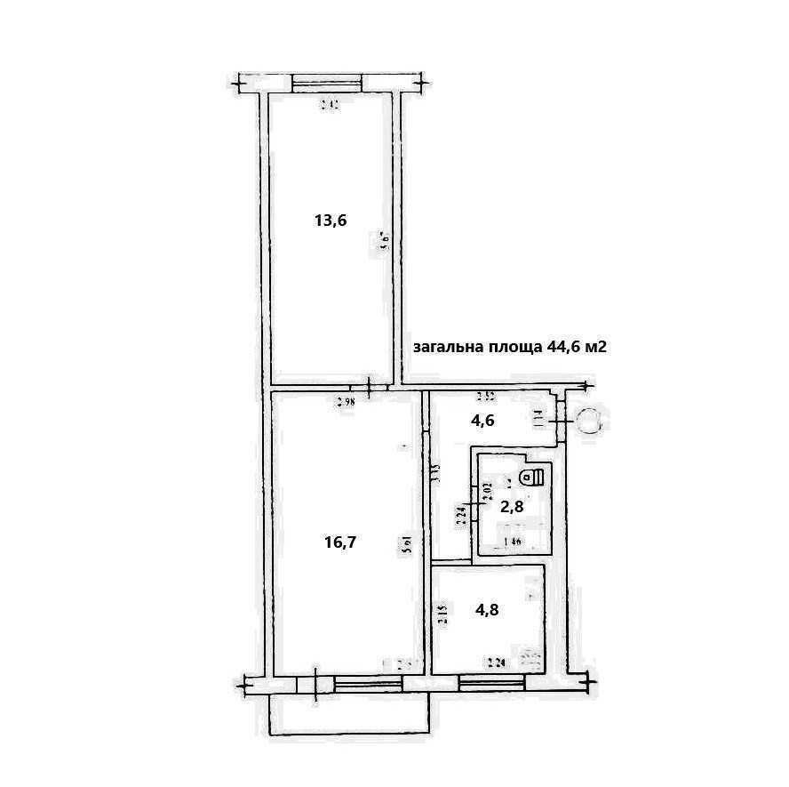 45 м², 2 кімнати, Половки — вигідна ціна - фото 1
