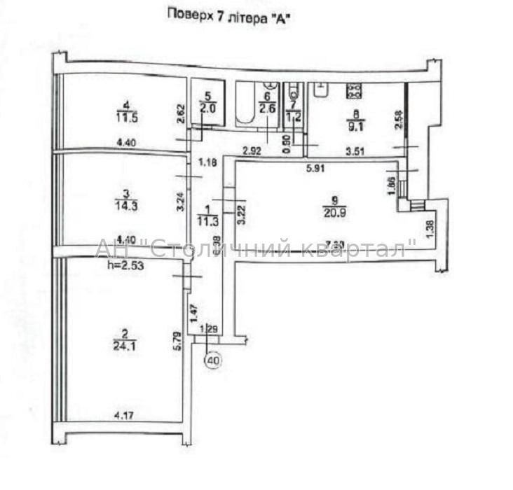 - 7 поверх/9 поверхового цегляного будинку.