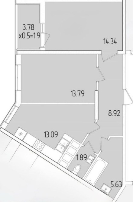 • Площадь кухни 13.09 м2