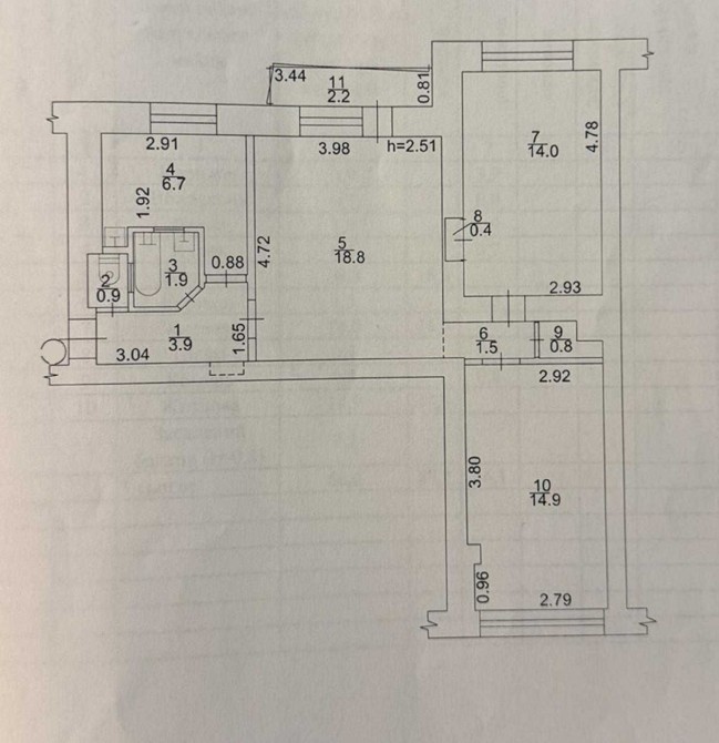 2 поверх 9-поверхового цегляного будинку (1967 р.)
