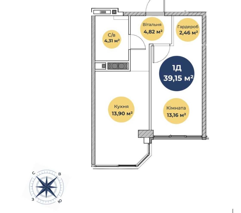 • Общая площадь 40 м2