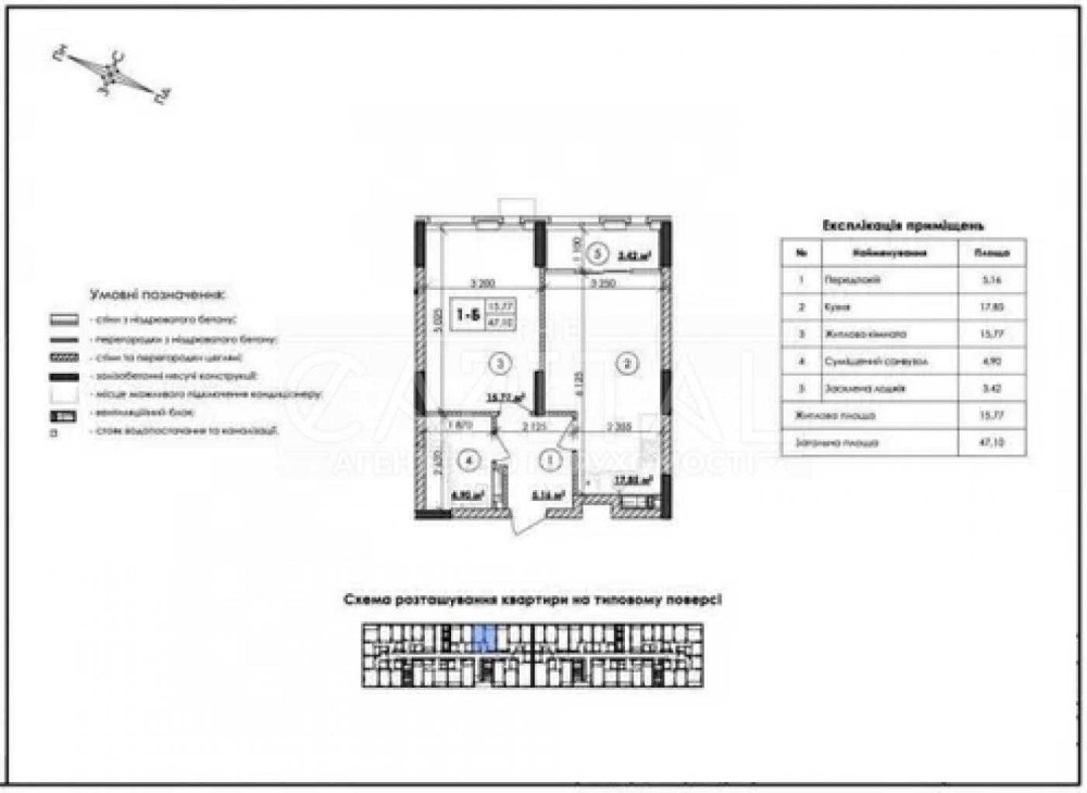 Квартира має площу 47.1 квадратних метри. Пропонується за акційною ціною всього 29000 у.о., що є найнижчою ціною на ринку. Продаж по перепоступці.