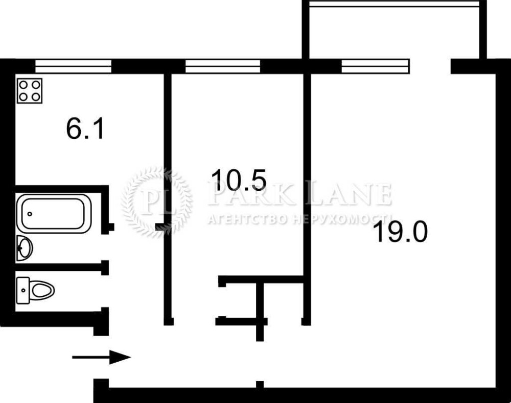 • Площадь кухни 7 м2