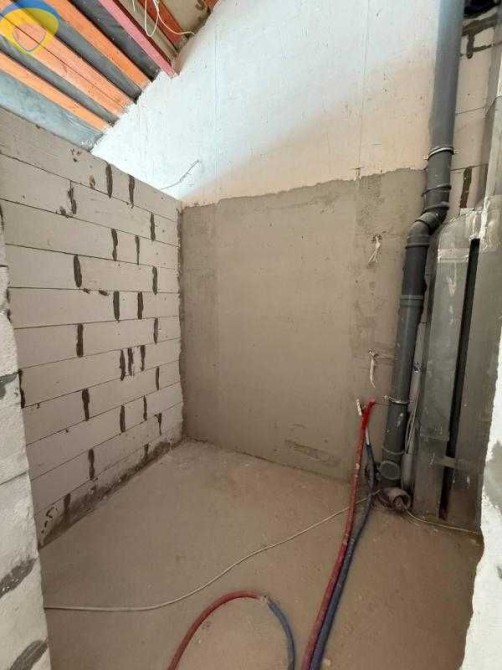 сделана разводка электрики и сантехники, отштукатурены стены,