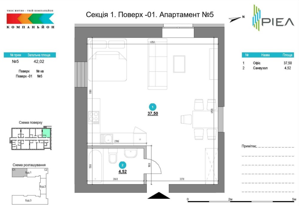 Апартамент 41.6 м2 з окремою спальнею ЖК Компаньйон - фото 2