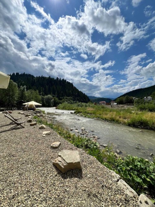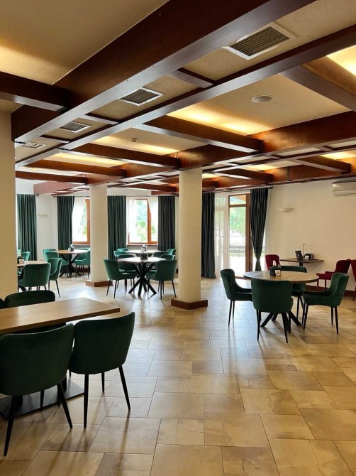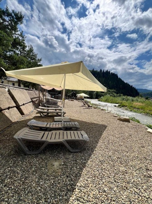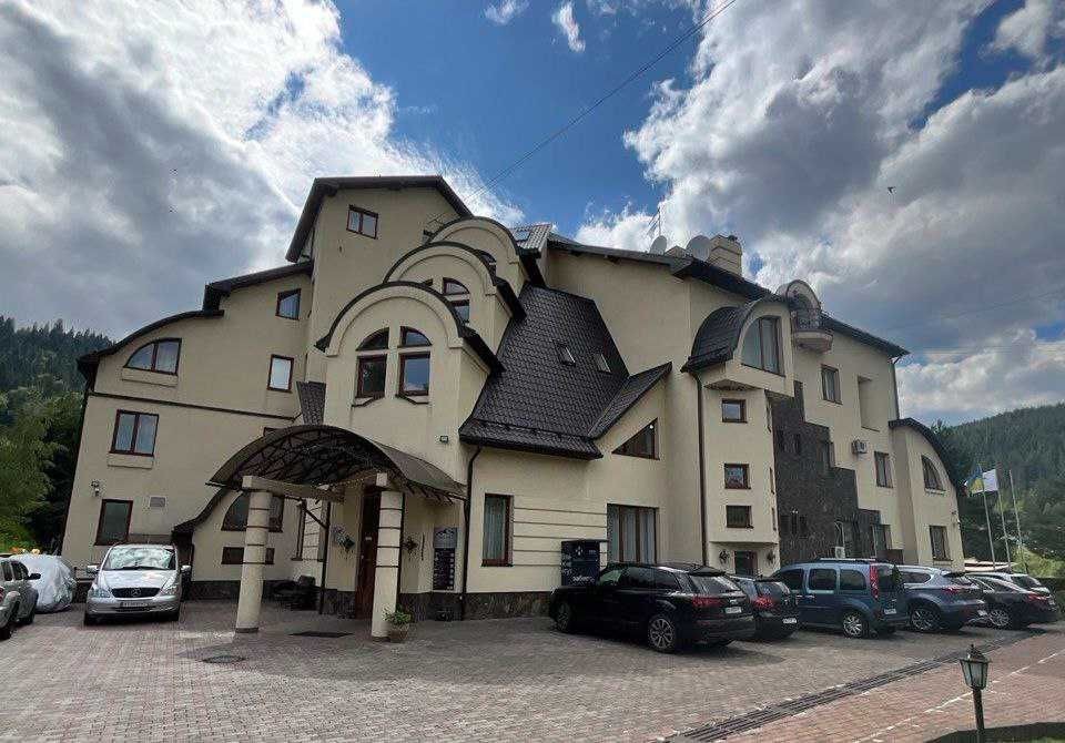 Пропонуємо вашій увазі готель "Friend’s House", який знаходиться у Поляниці (урочище Стаїще). Він складається з двох будинків. По праву сторону розташований перший будинок, побудований у 2007 році, та по ліву сторону - другий, збудований у 2018 році. Земельна ділянка становить 0.054 га. Другий будинок має чотири повноцінних поверхи та п'ятий мансардних. Загальна площа складає 295 кв. м. Він зведений на бутобетонному фундаменті, з монолітним каркасом, колони якого заповнені керамблоками. Тип перекриття дерев'яні балки. Дах будинку вкритий металочерепицею, та утеплений мін ватою товщиною 20 см. Стіни також утеплені пінопластом товщиною 10 см. Будинок має три входи з металопластиковими дверима. По всьому будинку встановлені двокамерні енергозберігаючі вікна металопластикові. Підлога в житлових кімнатах (номерах) викладена ламінатом, у коридорах, санвузлах та допоміжних приміщеннях - плиткою з підігрівом. Опалення здійснюється твердопаливним котлом на пелетах потужністю 45 кВт (приблизний розхід пелетів - 10 тонн за сезон) та електрокотлом потужністю 12 кВт, який має два режими роботи: 6 кВт і 12 кВт. Також на четвертому поверсі знаходиться комін. Вода подається від резервуара об'ємом 30 тонн, який автоматично наповнюється зі скважини або криниці. Також встановлені фільтри для очищення води. На гарячу воду встановлений бойлер на 500 л. На передньому подвір'ї розташовано автономний біосептик, який обслуговує два будинки. До готелю підведено 15 кВт електроенергії, а також є генератор на 30 кВт для трьох будинків. На першому поверсі, при вході, розташовано хол, кімнату для лижного спорядження, пральну кімнату, котельню та складське приміщення, яке можна в подальшому перебудувати за бажанням. На другому поверсі розміщено три номери: двомісний, тримісний та чотиримісний сімейного типу з двома кімнатами. На третьому поверсі аналогічно розташовані номери. На четвертому поверсі розташована їдальня з панорамним вікном, що має чудовий вид на гору Говерлу. Також тут знаходиться загальна кухня, кімната для персоналу, окремий санвузол та місце для будівництва сходів на п'ятий поверх. У кожному номері є санвузол та душова кабіна. Перший двоповерховий будинок має загальну площу 193 м2 та включає сім кімнат, кімнату для персоналу, велику їдальню та кухню загального користування. Три санвузли і котельня, де знаходяться твердопаливний котел (пелетний, дров'яний), бойлер на 300 літрів та електрокотел. Котельня також має вихід на внутрішній двір. На внутрішньому дворі знаходиться альтанка на пів відкритого типу, крісла-гойдалки, а також парковка на чотири авто. На передньому подвір'ї розташована парковка на сім авто. Ці два будинки огороджені брамою з фарбованої дошки. Готель має дуже гарні відгуки: на Google Maps 50 відгуків з середньою оцінкою 4,9 з 5, а на Booking - 14 відгуків з середньою оцінкою 9,8 з 10.