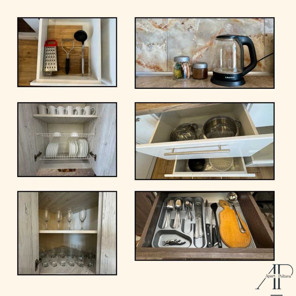 7. На кухні завжди є базовий набір продуктів. Ви знайдете сіль, перець, чай, каву, цукор та серветки.