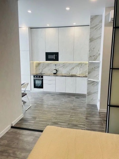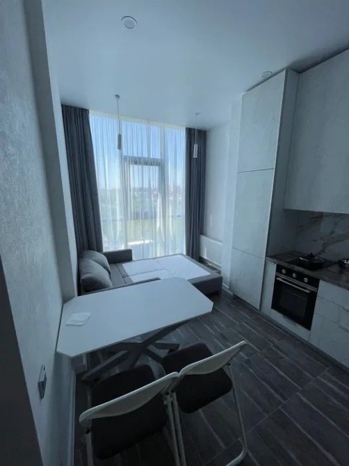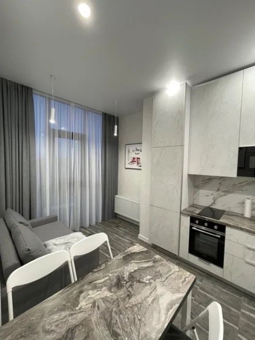 Оренда стильної 1 к кв з кухнею студією в новому будинку ЖК "Файна Таун" в Шевченківському районі, вул. Салютна, 2 Квартира 43 м2 , розташована на четвертому поверсі та складається з передпокою, спальні, великої кухні -студії та санвузла. Вікна квартири виходять в двір. Облаштована всіма необхідними меблями з екологічно чистої деревини та оснащена побутовою технікою: телевізор Samsung Smart 43, кондиціонери в кухні та кімнаті, плита індукційна, вбудований холодильник, духова шафа з функцією мікрохвильової печі, пральна машина з сушаркою. В кухні та ванній кімнаті тепла підлога, високошвидкісний інтернет. ЖК "Файна Таун" це: закрита територія з входом по картці, цілодобова охорона, відеоспостереження, паркінг, підземні контейнери для сміття, зарядні станції для електромобілів та лавки з інтегрованими батареями для підзарядки девайсів, розумне освітлення, яке підлаштовується під час доби та ще багато чого для того, щоб жити з комфортом й ні в чому себе не обмежувати) розповім при перегляді. Зручне транспортне сполучення та розвинута інфраструктура: магазини,спортивні та пішохідні зони ,зона барбекю, ресторани та кафе. Квартира, в якій поєднані комфорт та затишок, шукає своїх порядних орендарів молоду пару або одну людину без дітей та тварин. Перша оренда, квартира вільна.