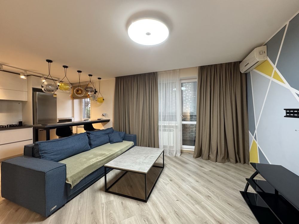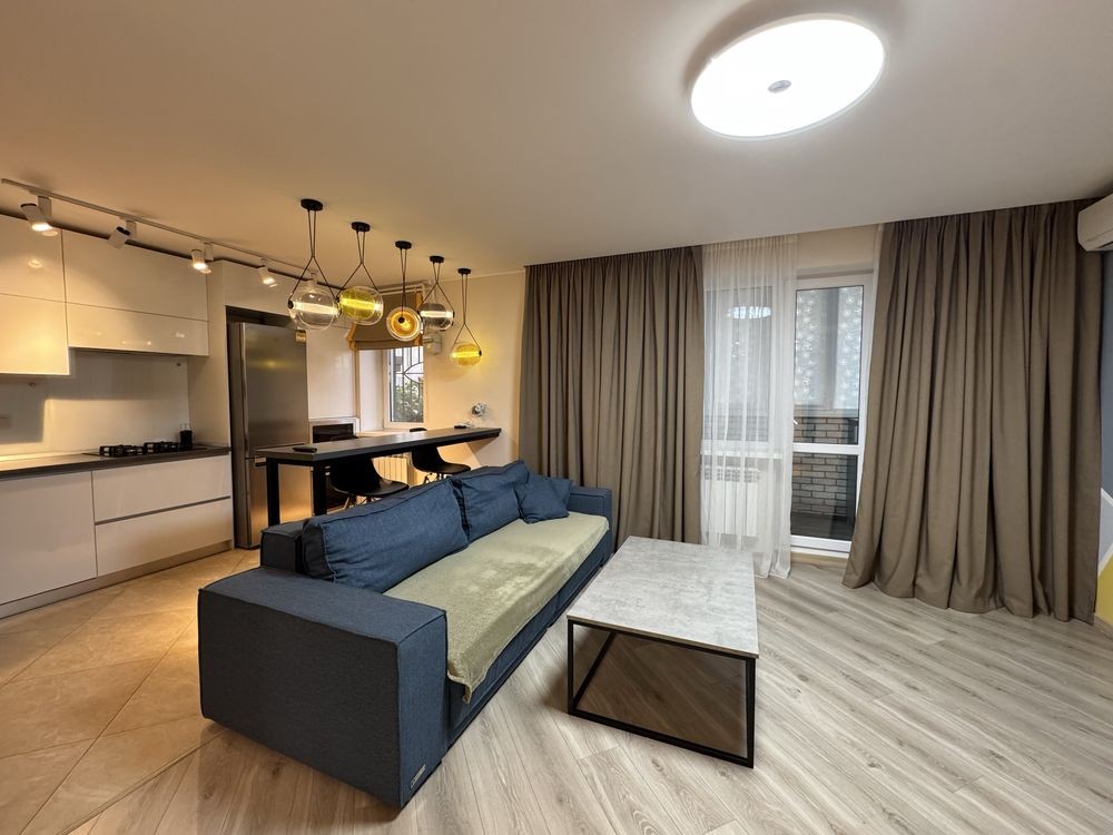 Оренда стильної 1 к кв з кухнею студією в новому будинку ЖК "Файна Таун" в Шевченківському районі, вул. Салютна, 2 Квартира 43 м2 , розташована на четвертому поверсі та складається з передпокою, спальні, великої кухні -студії та санвузла. Вікна квартири виходять в двір. Облаштована всіма необхідними меблями з екологічно чистої деревини та оснащена побутовою технікою: телевізор Samsung Smart 43, кондиціонери в кухні та кімнаті, плита індукційна, вбудований холодильник, духова шафа з функцією мікрохвильової печі, пральна машина з сушаркою. В кухні та ванній кімнаті тепла підлога, високошвидкісний інтернет. ЖК "Файна Таун" це: закрита територія з входом по картці, цілодобова охорона, відеоспостереження, паркінг, підземні контейнери для сміття, зарядні станції для електромобілів та лавки з інтегрованими батареями для підзарядки девайсів, розумне освітлення, яке підлаштовується під час доби та ще багато чого для того, щоб жити з комфортом й ні в чому себе не обмежувати) розповім при перегляді. Зручне транспортне сполучення та розвинута інфраструктура: магазини,спортивні та пішохідні зони ,зона барбекю, ресторани та кафе. Квартира, в якій поєднані комфорт та затишок, шукає своїх порядних орендарів молоду пару або одну людину без дітей та тварин. Перша оренда, квартира вільна.