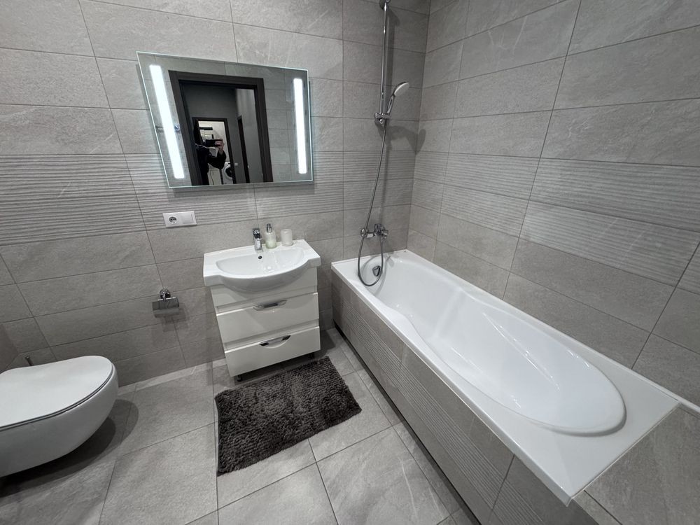 Житло укомплектоване меблями та технікою для комфортного проживання – зручне двоспальне ліжко, шафа-купе для зберігання речей, у вітальні диван (розкладається), стильний кухонний гарнітур та обідня зона. Техніка: два кондиціонери, два телевізори, wi-fi, плита, духова шафа, холодильник, мікрохвильова піч, електрочайник, пральна машина. Стильна ванна кімната з великою кутовою ванною і душовою кабіною.
