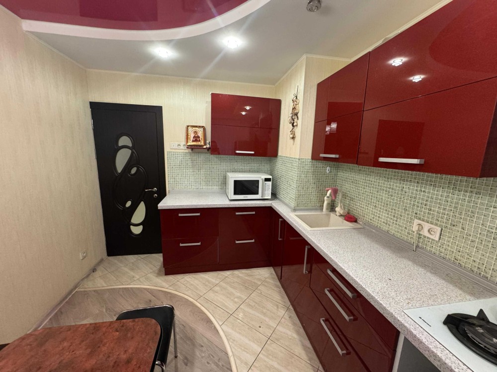 Квартира расположена на 3-м этаже 9-ти этажного дома. Очень светлая и чистая. Удобное расположение. Рядом есть ВСЯ инфраструктура. Есть парковка возле дома.