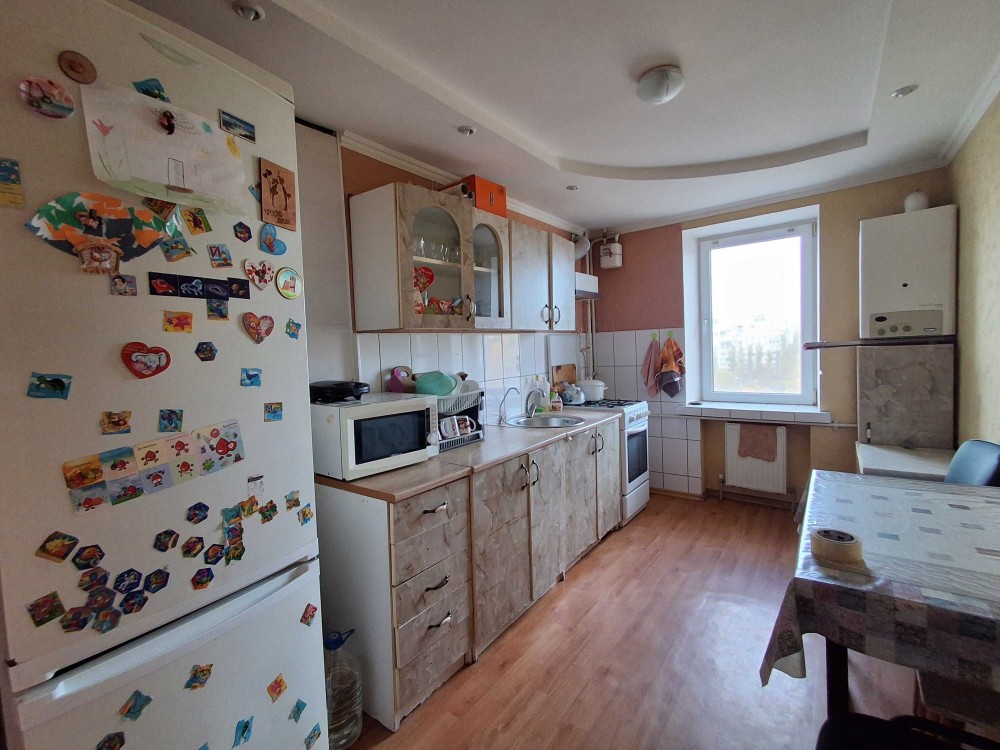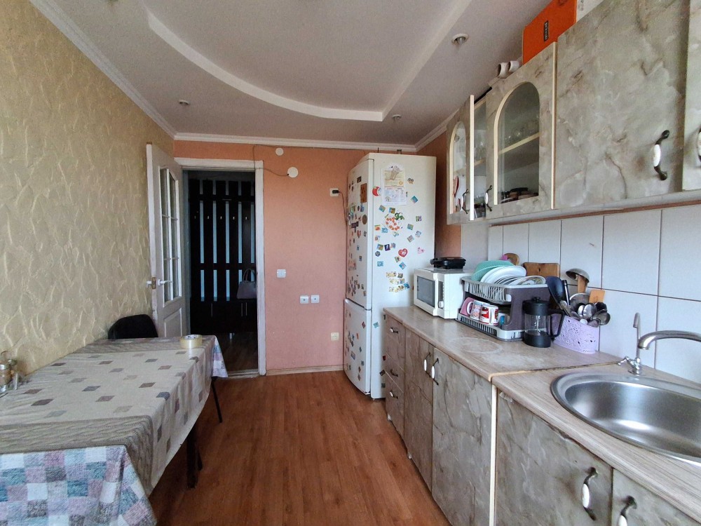 Квартира просторная, теплая, не угловая. Комнаты раздельные, просторная кухня. С/узел раздельный, в плитке.