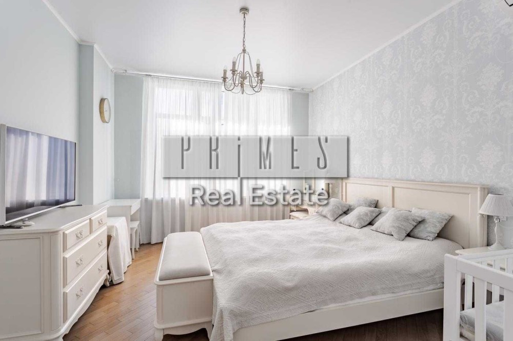 - Меблі: сучасна якісна меблі у світлих тонах, велика кровать 200х220 з англійським матрацом, тумбі, комод, туалетний столик та шафа-купе для зберігання промов. Додатково встановлена дитяча кроватка.