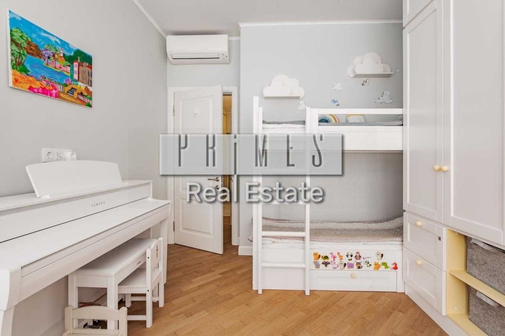 - Інтер'єр: сучасний дизайн з яскравими акцентами, встановлене піаніно для зайняття музикою, а також зручні стелажі для зберігання іграшок.
