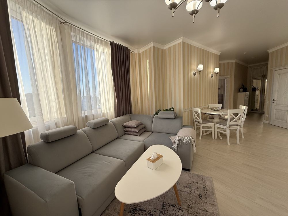 Сдается 3к/квартира с кухней-студией, двумя спальнями и двумя балконами с прекрасным видом.
