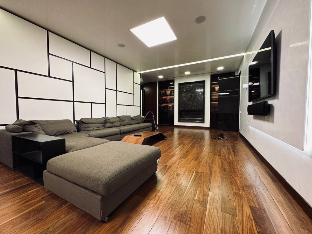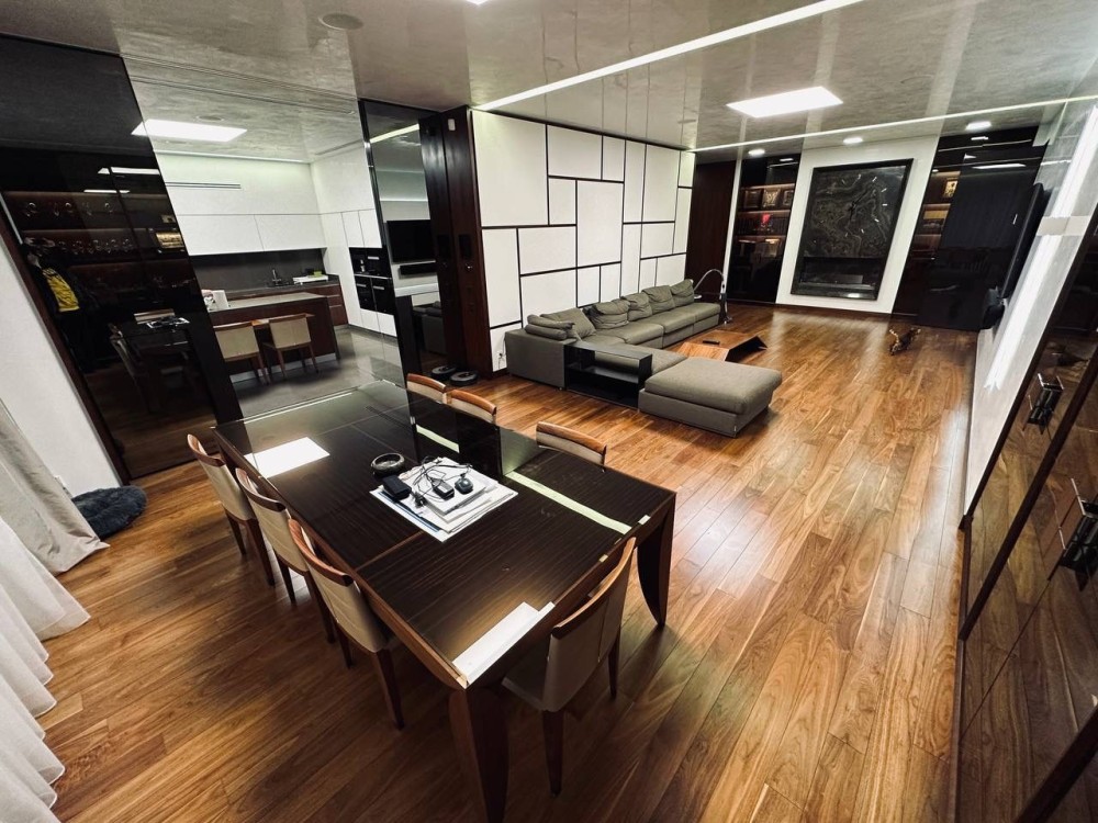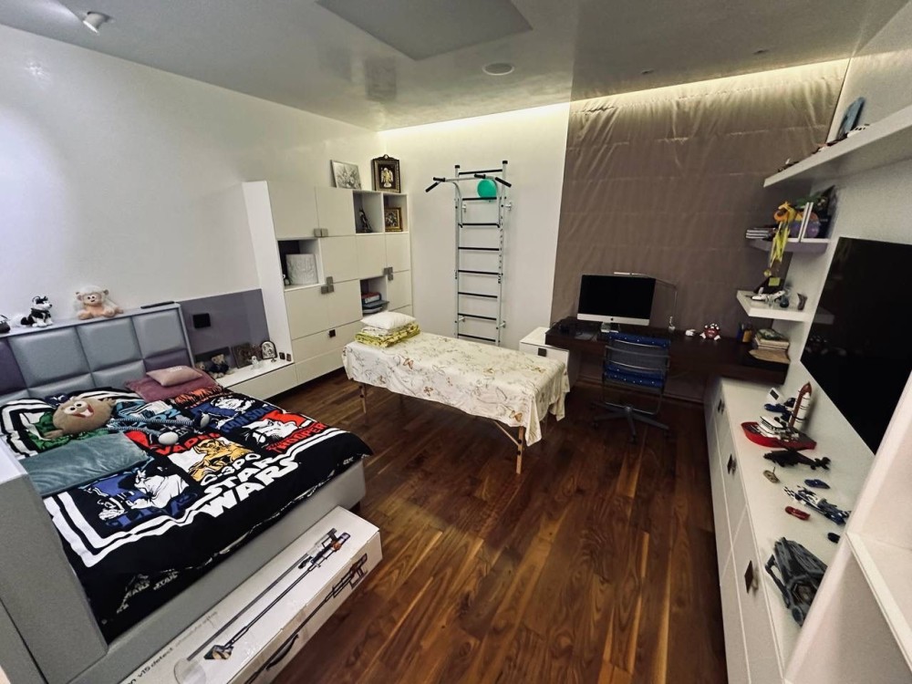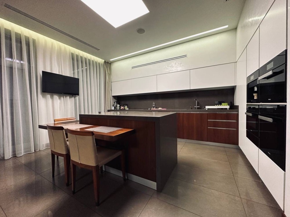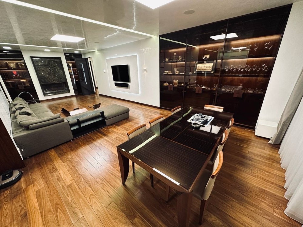 Планировка: кухня-студия (через раздвижную систему), 3 спальни, 3 санузла, 2 гардеробные.
