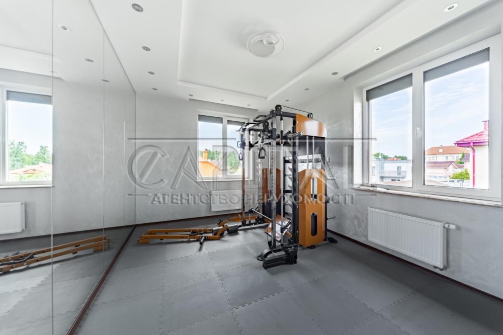 Другий поверх: спальня 1, спальня 2, 2 санвузла, гардероб (с сейфом), балкон, спортзал