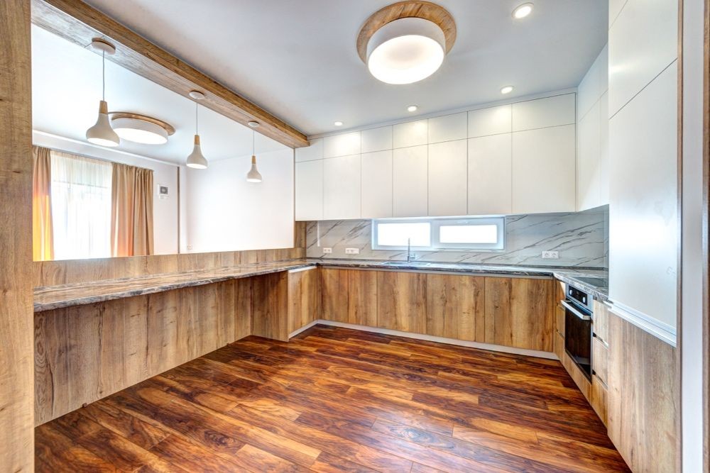 Большая современная кухня с встроенной техникой европейских производителей.