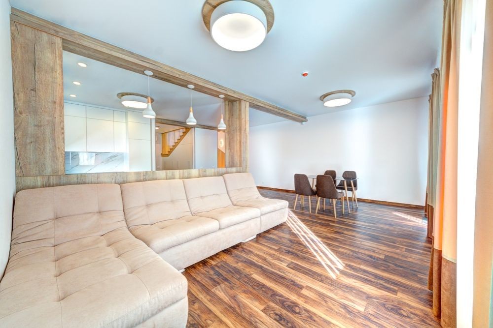 Зона отдыха с большим раскладным диваном.