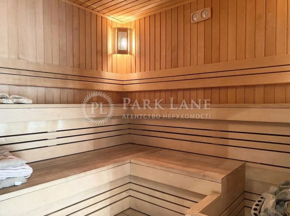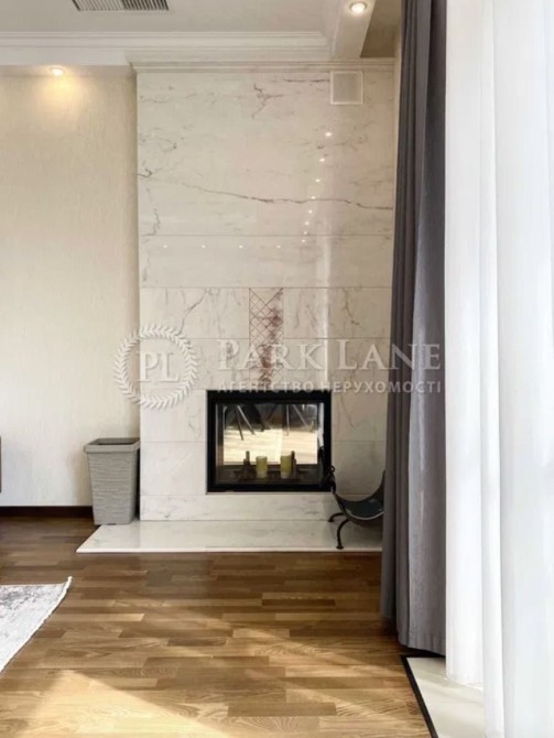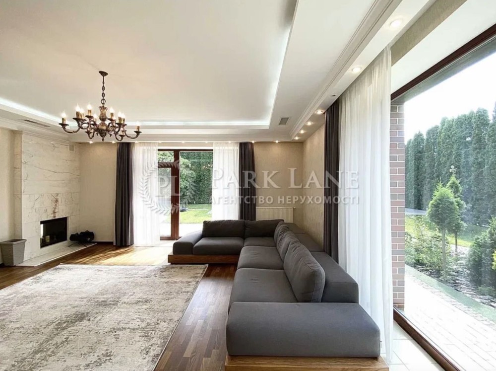 Площа будинку 330 м. кв. 2 поверхи, вітальня з каміном, кухня, сауна, кімната відпочинку з каміном, чотири спальні, три санвузли.