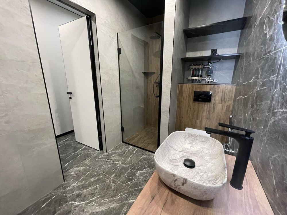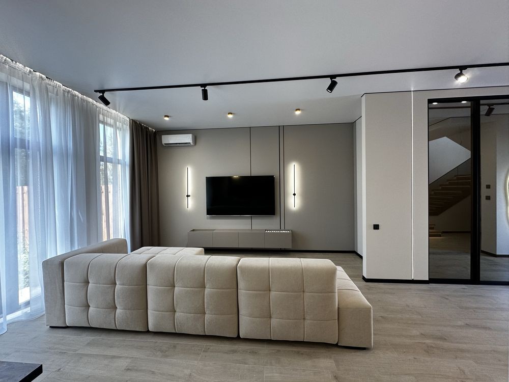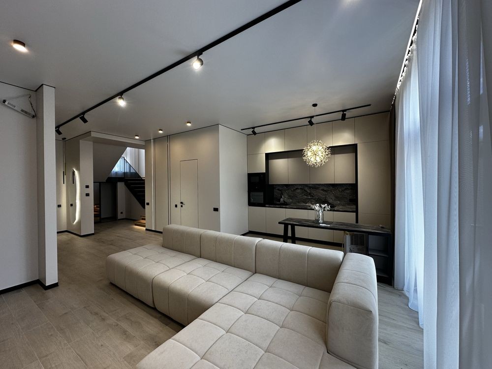 125 м2 , 3 спальні, 2 санвузли, гардеробна , велика кухня зала з виходом на терасу.