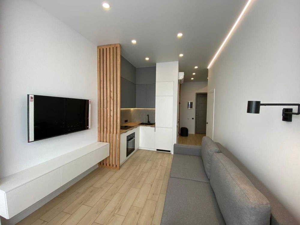 Кухня студия, спальня и гардеробная, электро отопление ( котел и теплые полы), укомплектована мебелью и техникой, смарт тв, кондиционер, вид на город.
