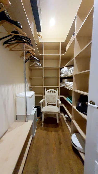 Находится на 5-м этаже. Общая площадь 62 м2. Распланирована в кухню-студию, спальню с просторным балконом, санузел с душевой кабиной, гардеробная.