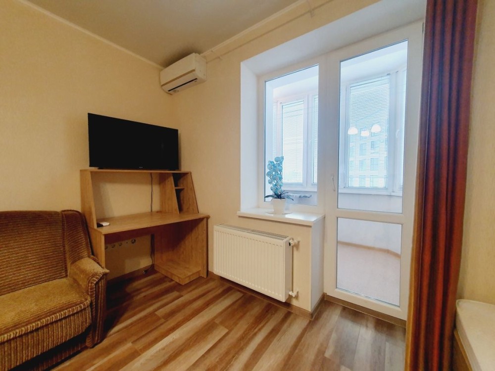 Здам 1-кімнатну квартиру на перехресті пр. О. Поля та вул. Ульянівської. 6 поверх 14-поверхового будинку. Функціональне планування: кухня, спальня, робочий кабінет, санвузол, кладова. Дві лоджії, одна з підігрівом підлоги. Капітальний ремонт, сучасні меблі та техніка. Теплі підлоги у прихожій, кухні та лоджії, інверторний кондиціонер. Для 1 людини або пари. Без тварин. 15 000 грн + ком. послуги комісія: 80%