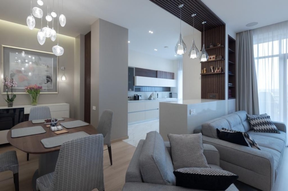 • Комфорт Кондиционер, Подогрев полов, Ванна, Душевая кабина, Мебель на кухне, Гардероб, Панорамные окна, Сигнализация, Пожарная сигнализация, Видеонаблюдение, Консъерж, Охраняемая территория, Парковочное место, Гостевой паркинг, Подземный паркинг, Лифт, Грузовой лифт