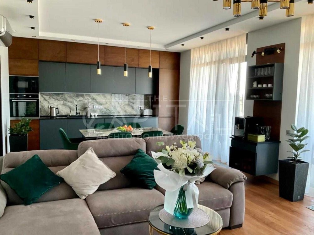 Продумане планування: кухня-студія об’єднана з вітальнею, що робить простір зручним і функціональним. Тут приємно вечеряти, працювати чи дивитися улюблені фільми на великому 75-дюймовому екрані. Є гардеробна кімната для зберігання речей і кабінет, який можна легко переобладнати у дитячу кімнату. Для додаткової безпеки встановлено сигналізацію та сейф.