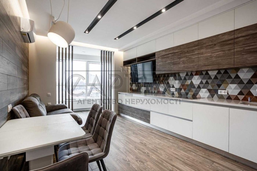 Простора та стильна квартира площею 80 м² розташована на 20-му поверсі елітного житлового комплексу “Володимирський”. Відмінне планування: дві окремі спальні, затишна кухня-вітальня, два санвузли, що забезпечують комфорт для мешканців та гостей.