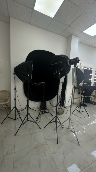- фотозона с 2 видеосветами, обычный и цветной, два софтбокса, кольцевая лампа, отражатель;