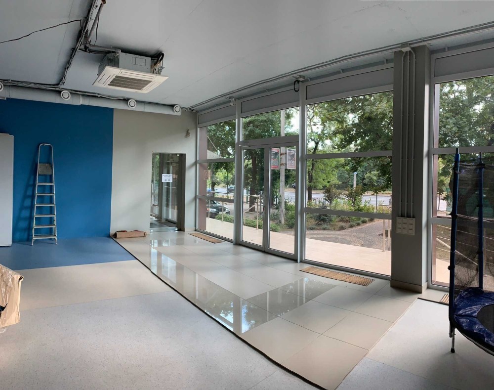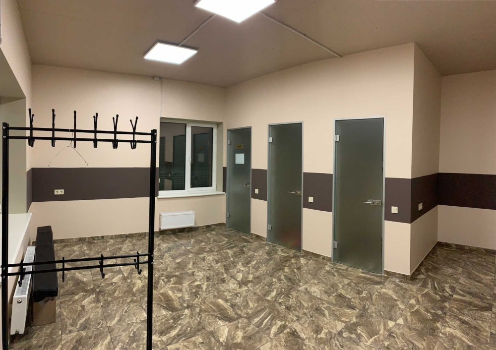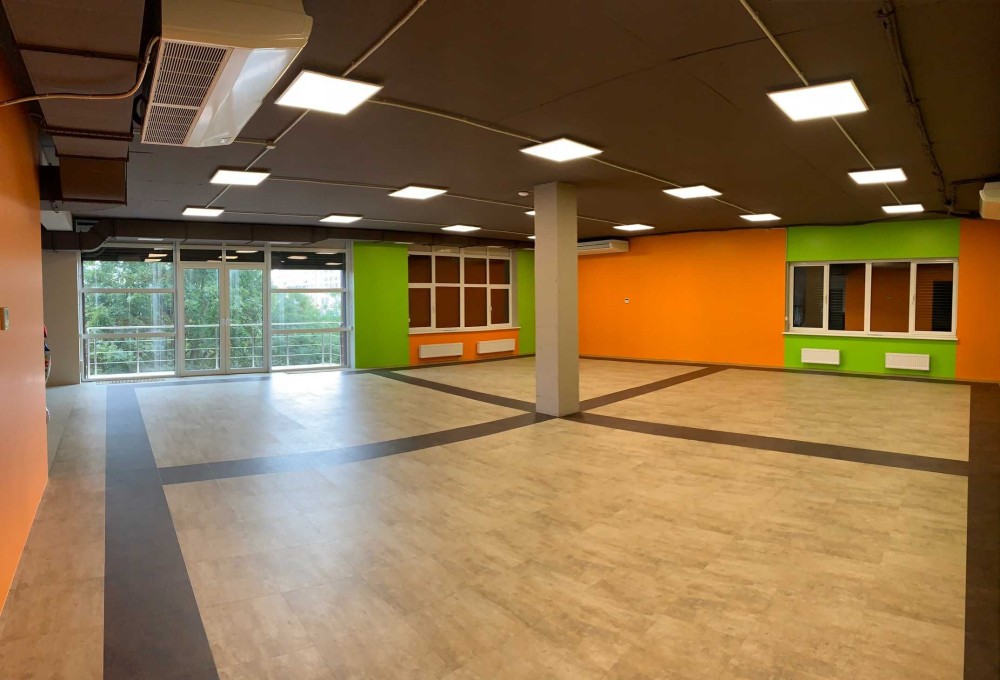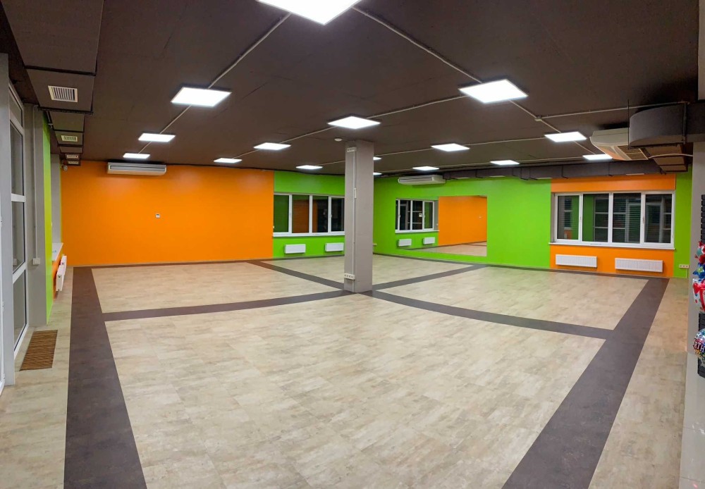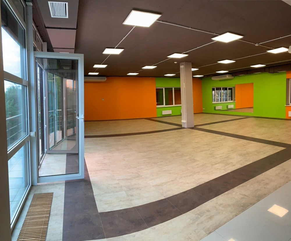 -третий этаж 190 м.кв. состоит из большого зала (147 м.кв.), балкон и раздевалки с душевыми.