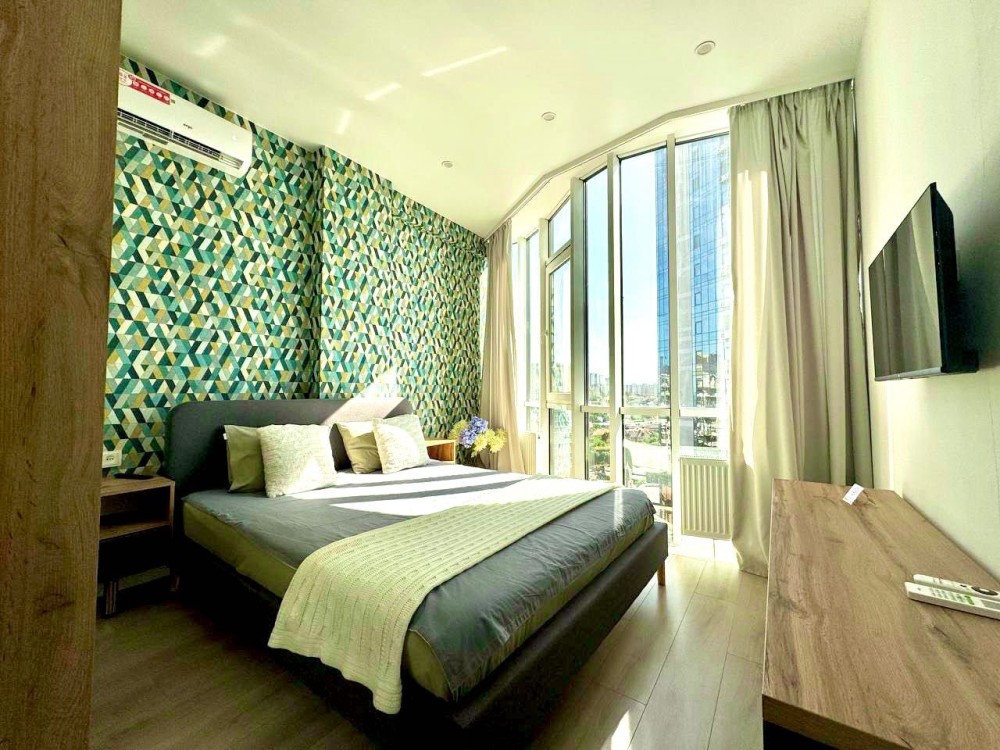Квартира состоит из двух комнат – гостиной с раскладным двуспальным диваном и уютной спальни с кроватью размера «king size»