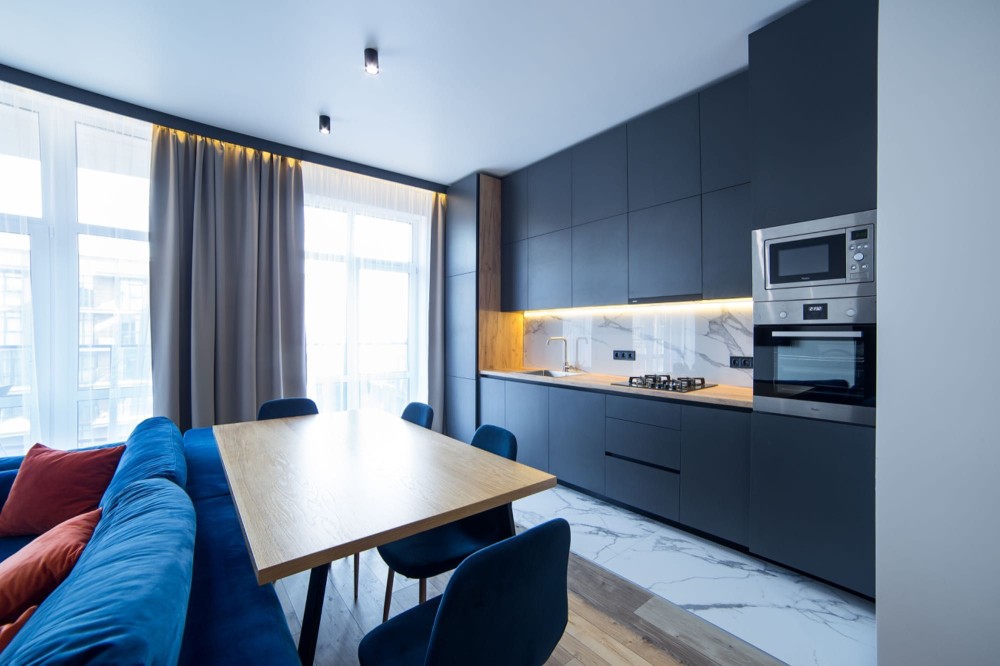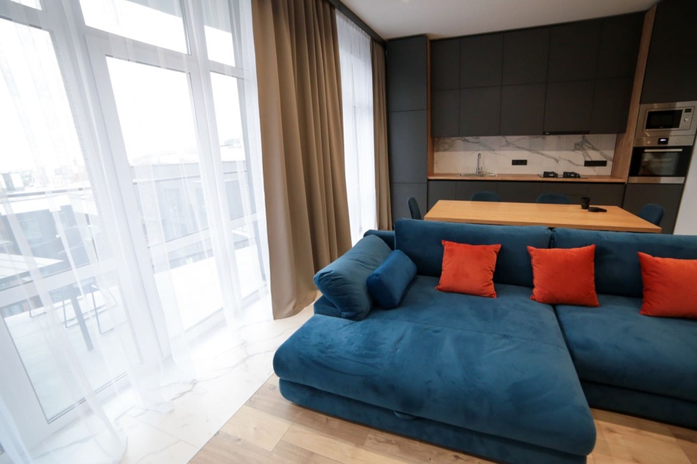 Оренда стильної 1 к кв з кухнею студією в новому будинку ЖК "Файна Таун" в Шевченківському районі, вул. Салютна, 2 Квартира 43 м2 , розташована на четвертому поверсі та складається з передпокою, спальні, великої кухні -студії та санвузла. Вікна квартири виходять в двір. Облаштована всіма необхідними меблями з екологічно чистої деревини та оснащена побутовою технікою: телевізор Samsung Smart 43, кондиціонери в кухні та кімнаті, плита індукційна, вбудований холодильник, духова шафа з функцією мікрохвильової печі, пральна машина з сушаркою. В кухні та ванній кімнаті тепла підлога, високошвидкісний інтернет. ЖК "Файна Таун" це: закрита територія з входом по картці, цілодобова охорона, відеоспостереження, паркінг, підземні контейнери для сміття, зарядні станції для електромобілів та лавки з інтегрованими батареями для підзарядки девайсів, розумне освітлення, яке підлаштовується під час доби та ще багато чого для того, щоб жити з комфортом й ні в чому себе не обмежувати) розповім при перегляді. Зручне транспортне сполучення та розвинута інфраструктура: магазини,спортивні та пішохідні зони ,зона барбекю, ресторани та кафе. Квартира, в якій поєднані комфорт та затишок, шукає своїх порядних орендарів молоду пару або одну людину без дітей та тварин. Перша оренда, квартира вільна.
