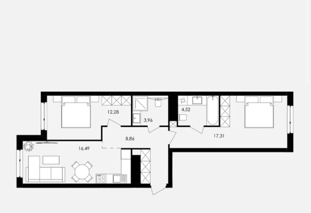 • Двухкомнатная