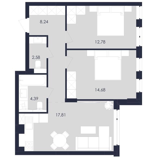 • Общая площадь 61 м2