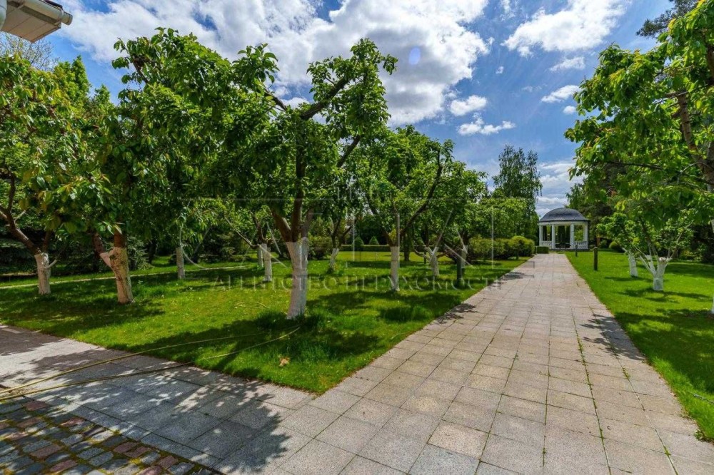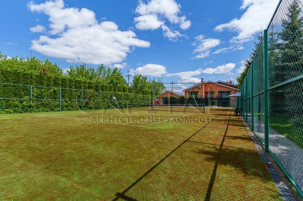 Охайна зелена територія з професійним ландшафтним дизайном, великою кількістю дерев і декоративних насаджень. На ділянці облаштовано великий доглянутий сад, дитячий майданчик, затишна альтанка для відпочинку, а також приватний тенісний корт — ідеальне місце для активного відпочинку.