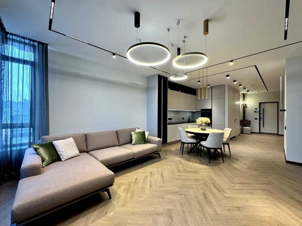 Квартира простора, світла та максимально ергономічна, з продуманим сучасним дизайном.