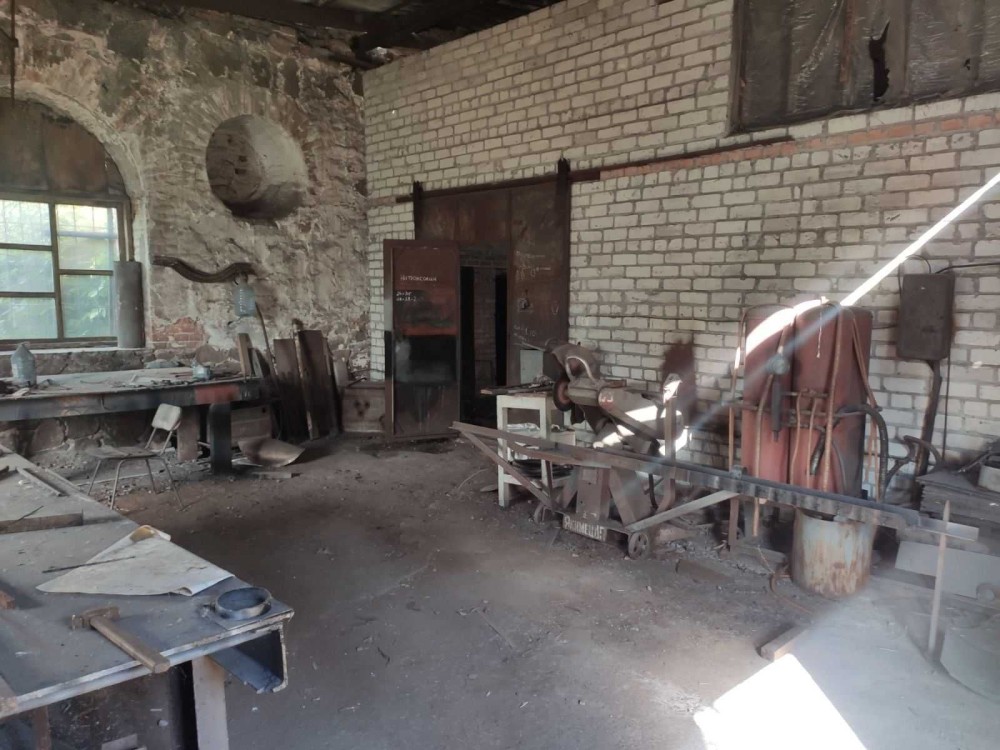 Який складається : офіс, ангар, виробничі та складські будівлі, гаражі. Загальна площа будівель 1500 кв.м. та відкрита територія площею 1 га. (оренда) і залізнична гілка до воріт, 2 центральні в'їзди для вантажного автотранспорту. В наявності ковальський та деревообробний цехи ,укомплектовані устаткуванням. Асфальтований під'їзд та територія , біля центру міста , жвавий трафік, поруч авторинок і розв'язка майбутнього мосту через р. Дніпро. Відеоспостереження на всій території