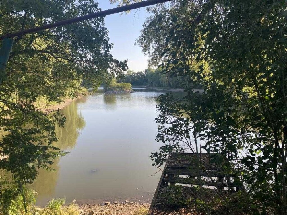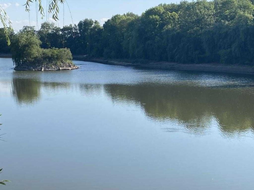 Велика водойма з островом.