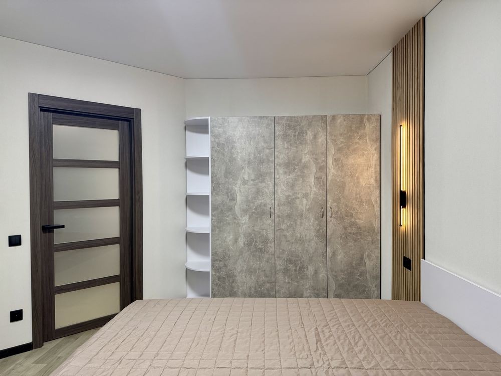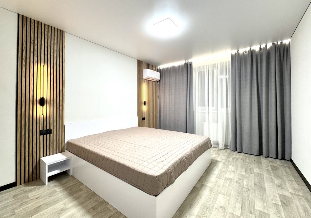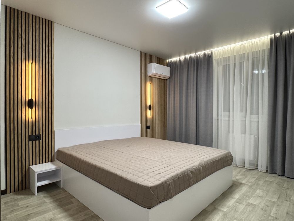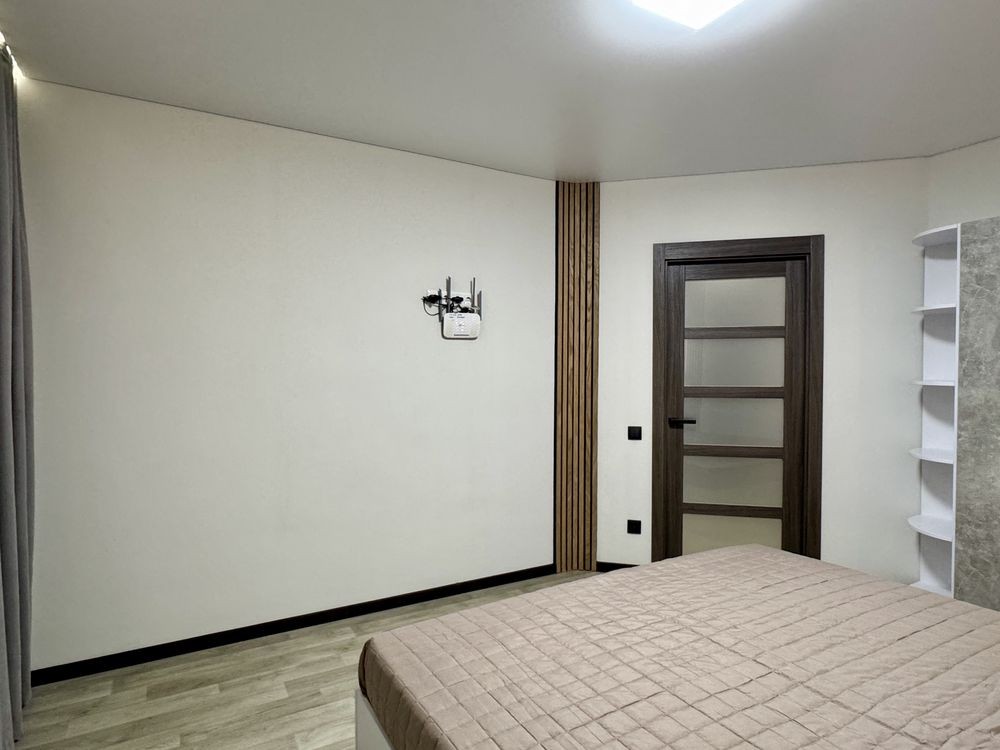 Навий ремонт, двоспальне ліжко, дві шафи, холодильник, пральна машина, бойлер, газова плита, кондиціонер.