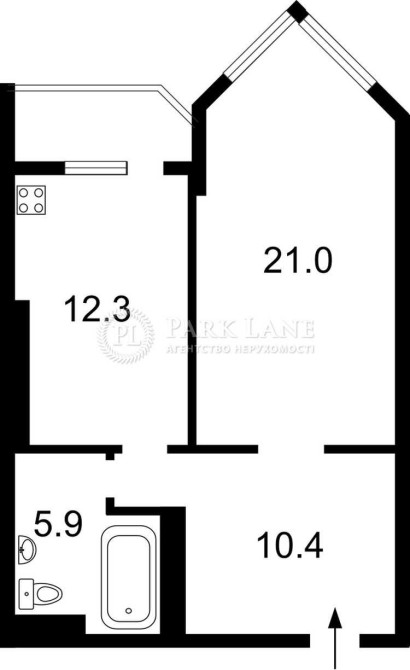 • Площадь кухни 12 м2