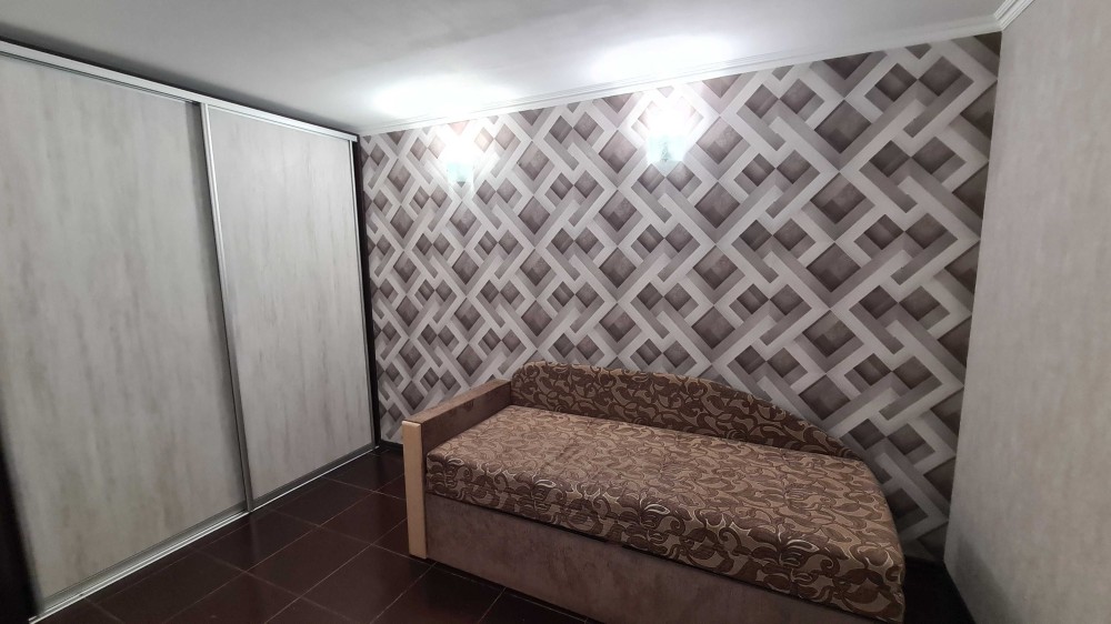 Площа 50 м2, одна кімната прохідна (перепланована з однокімнатної), кухня 15 м2.