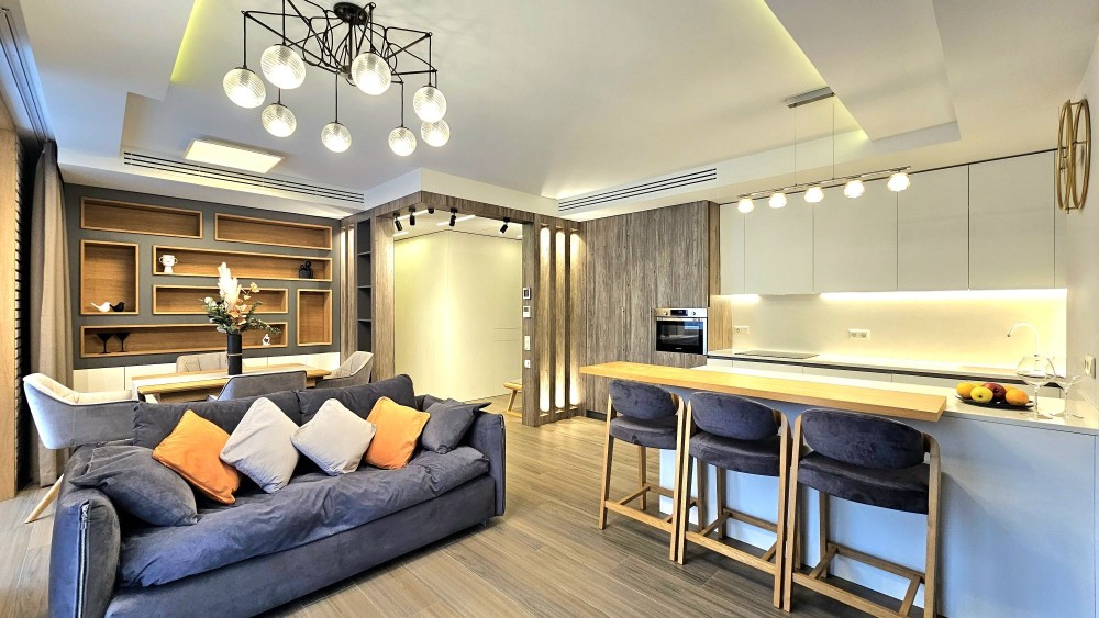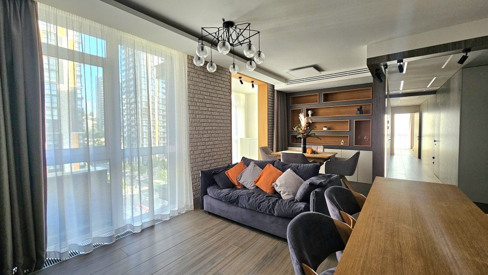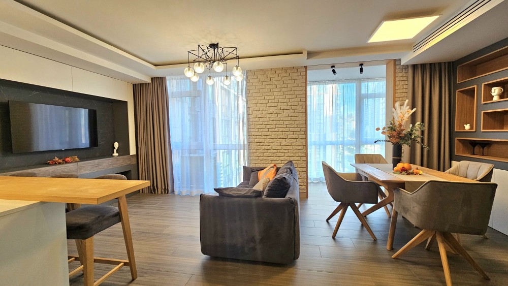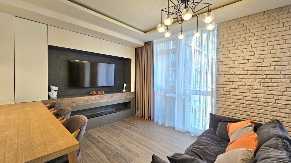 Квартира з якісним дизайнерським ремонтом та зручним плануваннням, укомплектована всією необхідною побутовою технікою та меблями найкращих виробників.